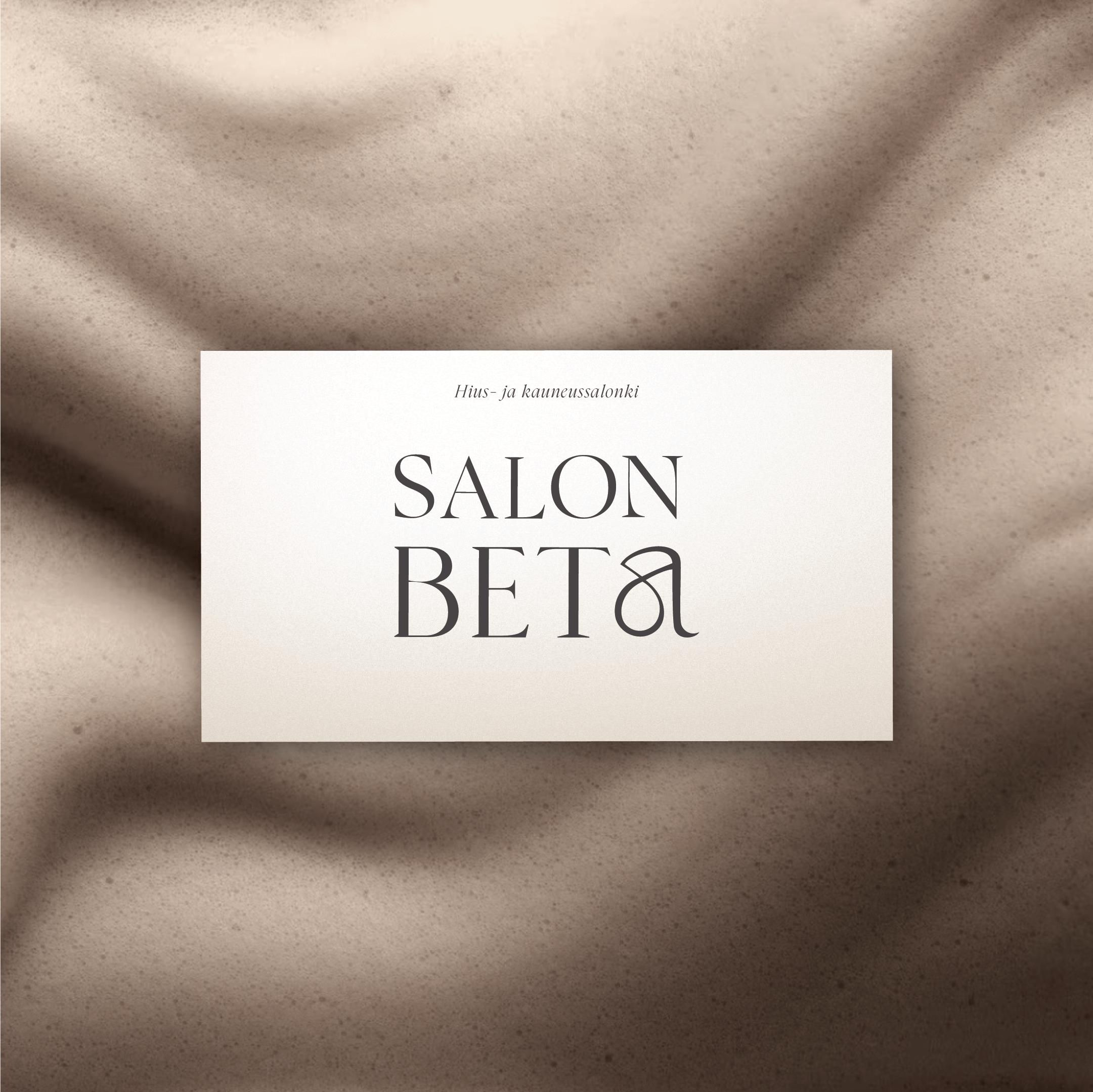 Salon BETA on hius ja kauneussalonki. Salon BETA-logossa rikottiin tietoisesti alan kliseitä ja rakennettiin identiteetti puhtaasti typografian varaan. Ohut ja selkeä kirjainmuotoilu tuo eleganssia,